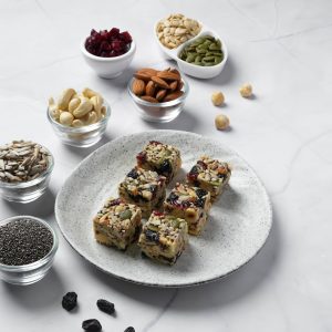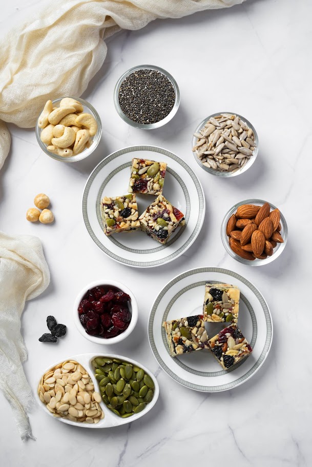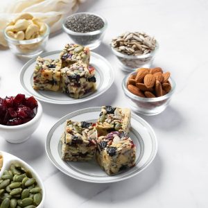 A crunchy and nutritious Dry Fruit Chikki made with a generous mix of cashews, almonds, pumpkin seeds, sesame seeds, and dried fruits, naturally bound together with jaggery or honey. These square-cut pieces offer a delightful balance of nutty crunch and natural sweetness in every bite.