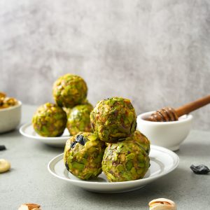 A rich and wholesome Dry Fruit Ladoo made from premium dates, cashews, almonds, pistachios, and raisins, naturally sweetened without refined sugar. These golden-brown ladoos have a soft, chewy texture with crunchy nut bites, offering a perfect balance of taste and nutrition.